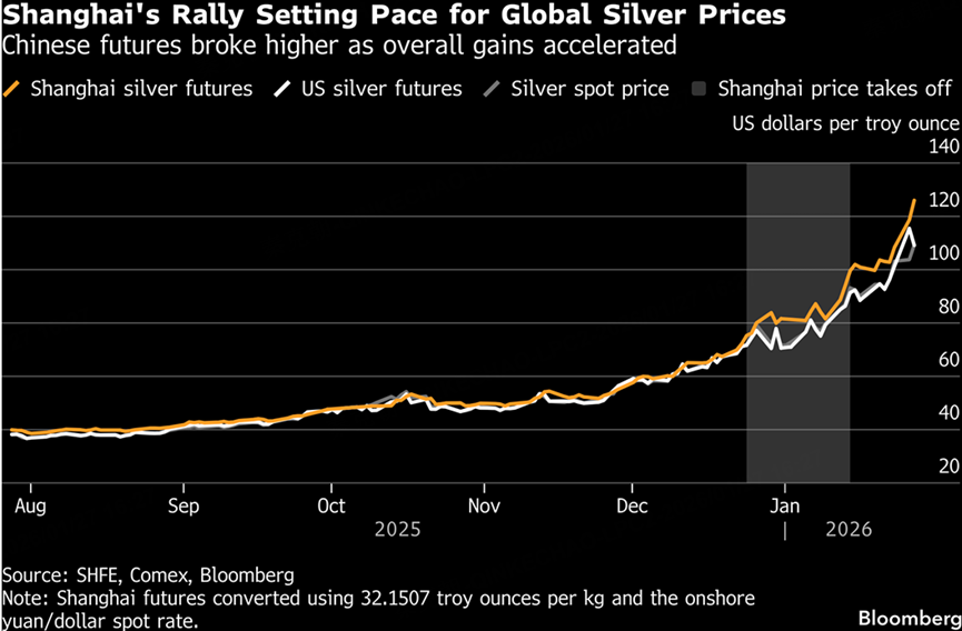 For most of last year’s silver surge, prices in Shanghai largely tracked international spot and New York futures. However, since late December, Chinese futures prices have begun to trade at a clear premium.