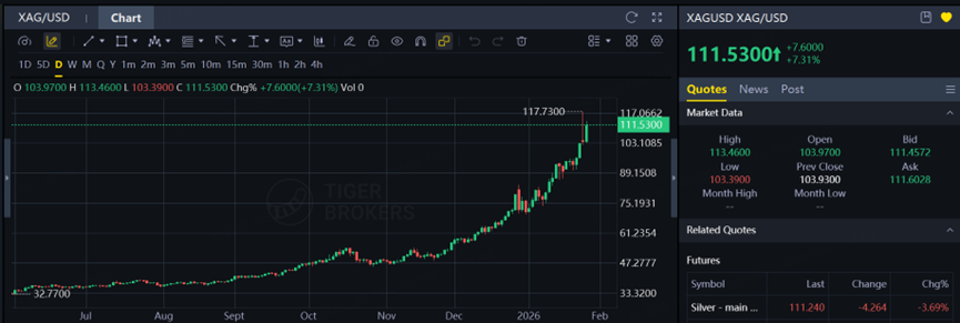 Therefore, does the emergence of long upper shadows signal that silver has become overbought? Even if the long-term fundamentals remain sound, does this significantly increase the likelihood of a near-term correction? We welcome your comments below—valuable insights will be rewarded with 30-100 Tiger Coins!