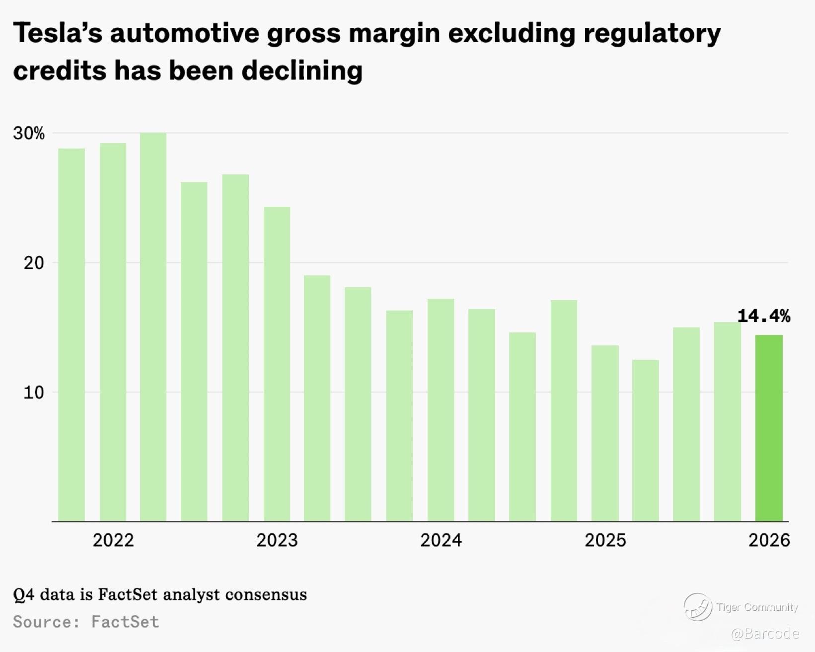 Auto gross margin excluding regulatory credits has broken below 15%, down from nearly 30% in 2022.