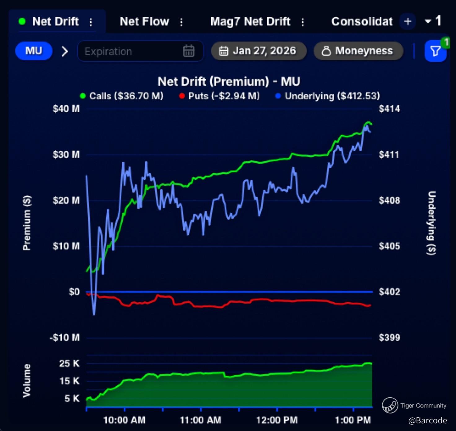 At the same time, $MU is the top unusual options stock intraday, with $36M+ in single-leg calls bought.