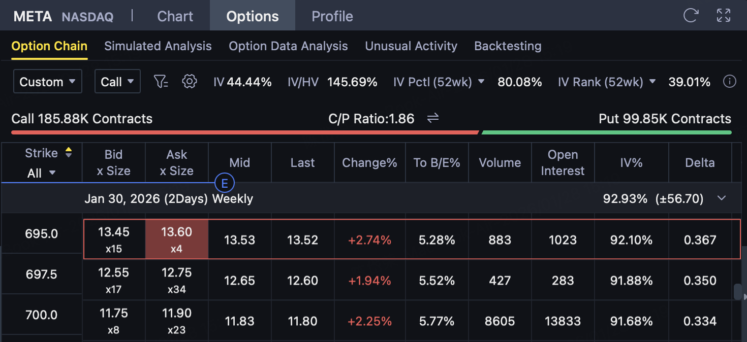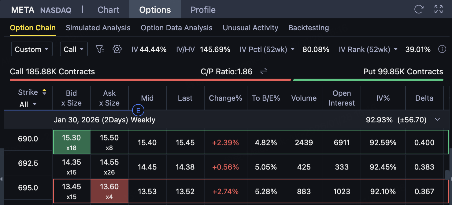 WhenMETA expiration price ≤ $690Time: