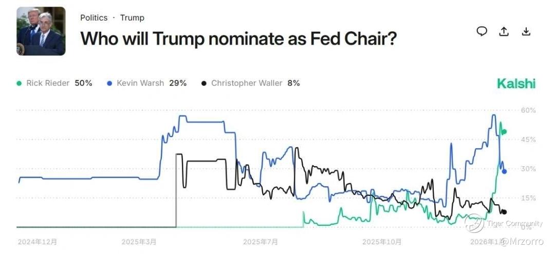 With no rate cut expected in January and Powell likely to repeat that policy is “well positioned,” market attention is increasingly shifting from when cuts begin to who sets the next policy regime. President Trump has signaled a Fed Chair announcement could come at any time, recently calling one candidate “very impressive,” while Kevin Hassett has publicly praised Rick Rieder. Prediction markets increasingly frame the race as Rieder versus Warsh.