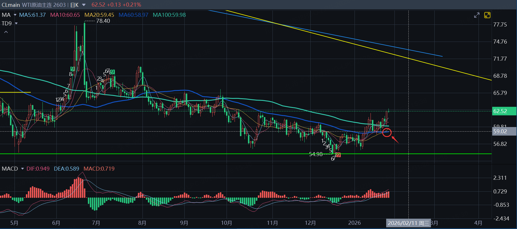 If WTI breaks above the 60-day moving average, then try a bullish calendar-spread strategy—go long the near-month contract (for example, March) and short the far-month contract (for example, June)—to express a bull-market time-spread arbitrage.