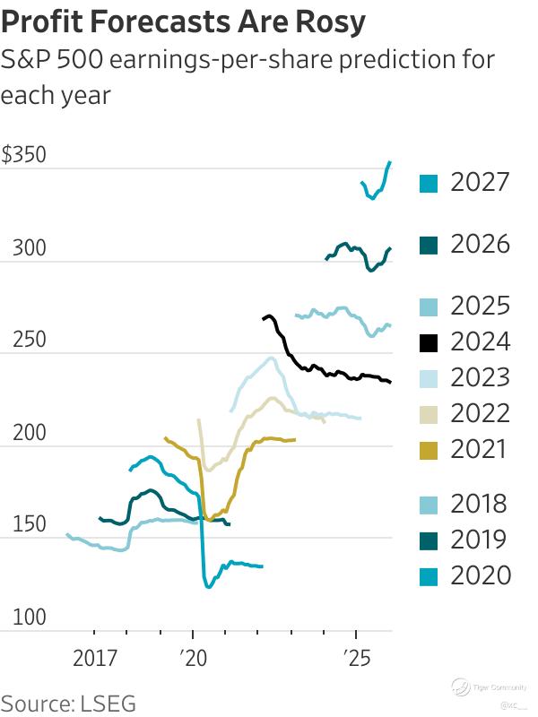 Continued strong corporate earnings growth (particularly in Magnificent 7/tech sectors driving recent rallies).