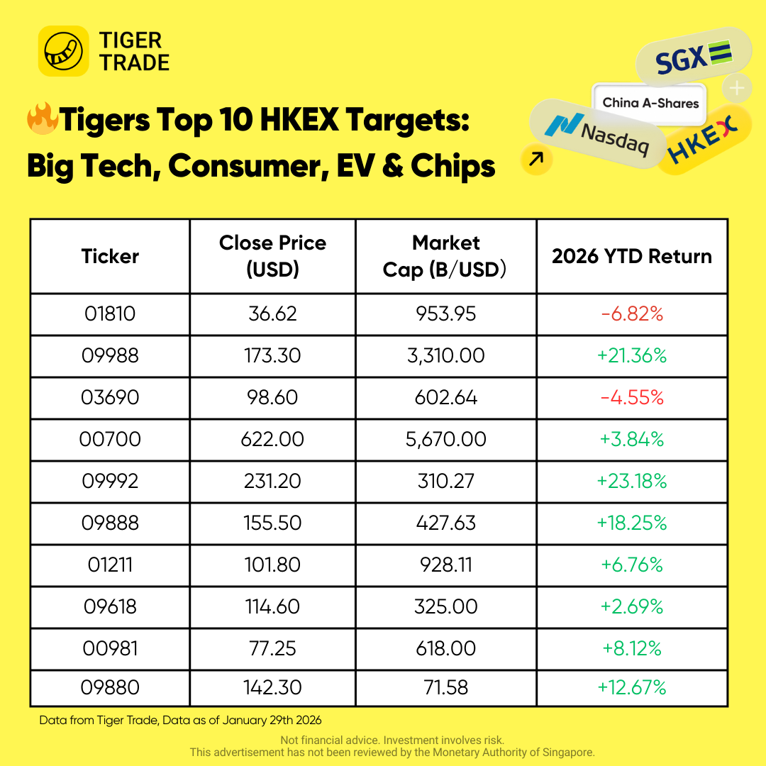 π₯Tigers Top 10 HKEX Targets: Big Tech, Consumer, EV & Chips