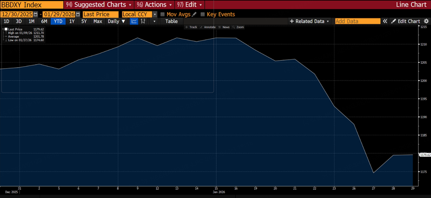 In addition, ongoing leadership uncertainty at the Federal Reserve has raised questions over its independence. Following repeated pressure from the Trump administration on current Chair Jerome Powell, market expectations for a more dovish successor and a Fed more willing to accommodate fiscal pressure have continued to build.