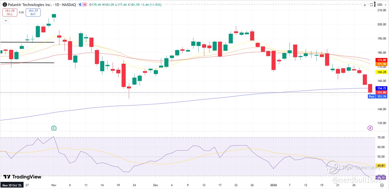 Analysis: In technical terms, an RSI below 30 is "Oversold." Historically, when PLTR hits these levels, it often sees a "dead cat bounce" or a short-term relief rally as sellers exhaust themselves.