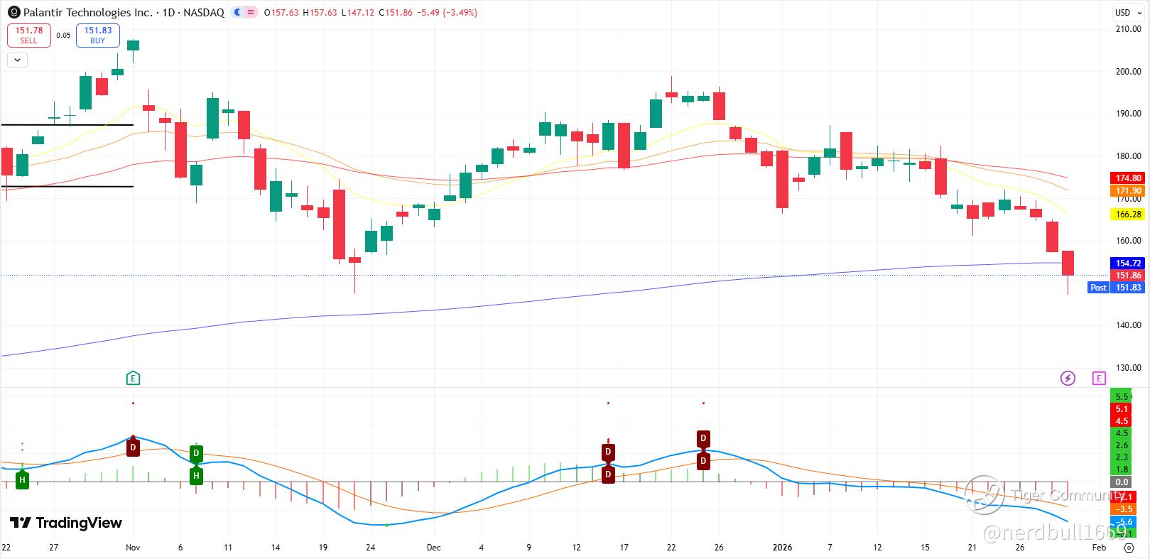 Moving Averages: PLTR is currently trading below its 50-day SMA ($166.67), which acted as a ceiling during the most recent bounce attempt.