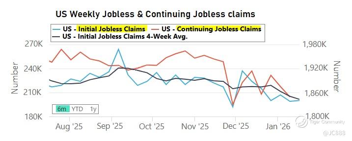 For week ending 17 Jan 2026, weekly claims rose by 1,000 to 200,000 versus consensus estimated a rise to 209,000.