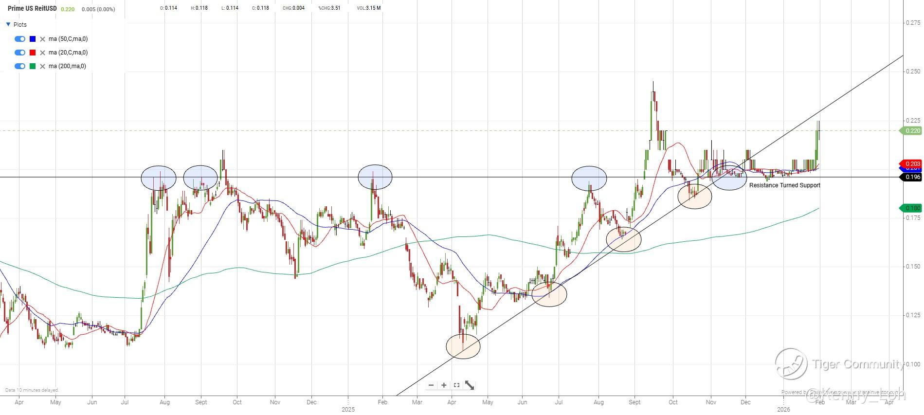 Final Verdict Technically, Prime US REIT has transitioned from a "bottom-fishing" play to a "momentum" play. The successful flip of the US$0.196 level from resistance to support is the most significant development on this chart. For a blog post, the narrative is clear: The technical recovery is finally aligning with the fundamental turnaround.
