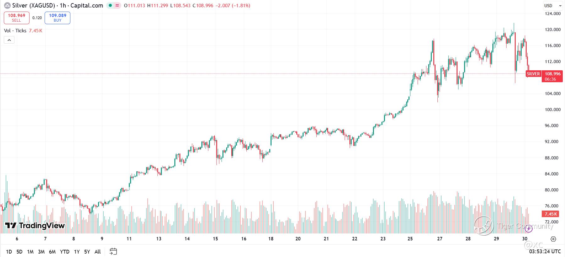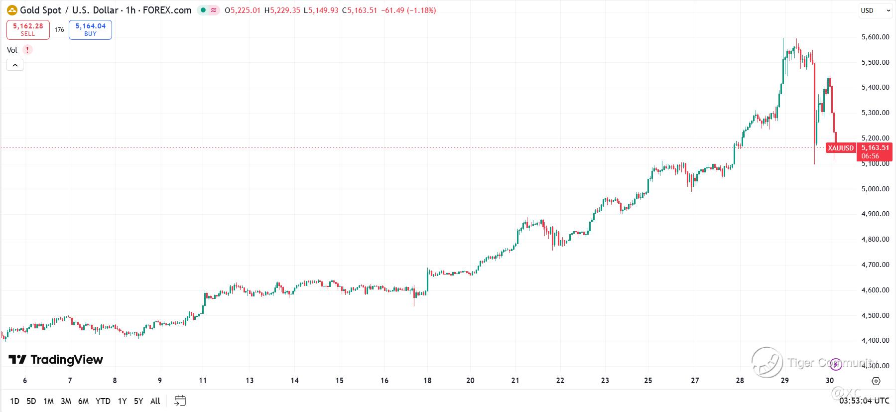 Yes, gold and silver delivered extreme volatility yesterday, with spot gold swinging nearly $500 (from a record $5,596 high to a low of $5,105) before rebounding sharply to close near $5,370. Silver mirrored the chaos, topping $121 before collapsing over $10 intraday. One-minute bars showed $100+ moves in gold, indicating severe liquidity evaporation and forced selling/liquidations. This was one of the wildest sessions in precious metals history, driven by: