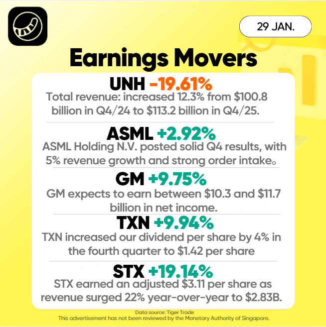 If you thought you knew where to hide in this market, this week just shredded the map. Typically, healthcare is the "safe harbor" while tech and autos are the "stormy seas." But Q4 earnings just flipped that logic upside down. We witnessed a massive capital rotation: The traditional safety net, $UnitedHealth(UNH)$ , collapsed in a -19% freefall driven by policy fears, while the so-called "cyclical" sectors roared back to life.
