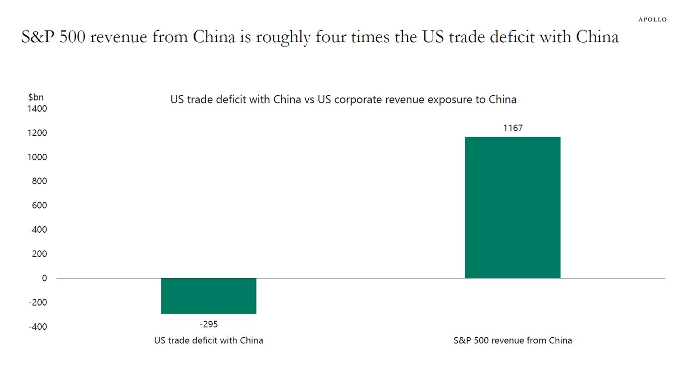 We keep hearing how China is screwing over the US on trade. But the reality is that China is the source of 7% of the $S&P 500(.SPX)$ companies’ revenues. A whopping $1.2 trillion a year - 4 times the trade deficit with China.
