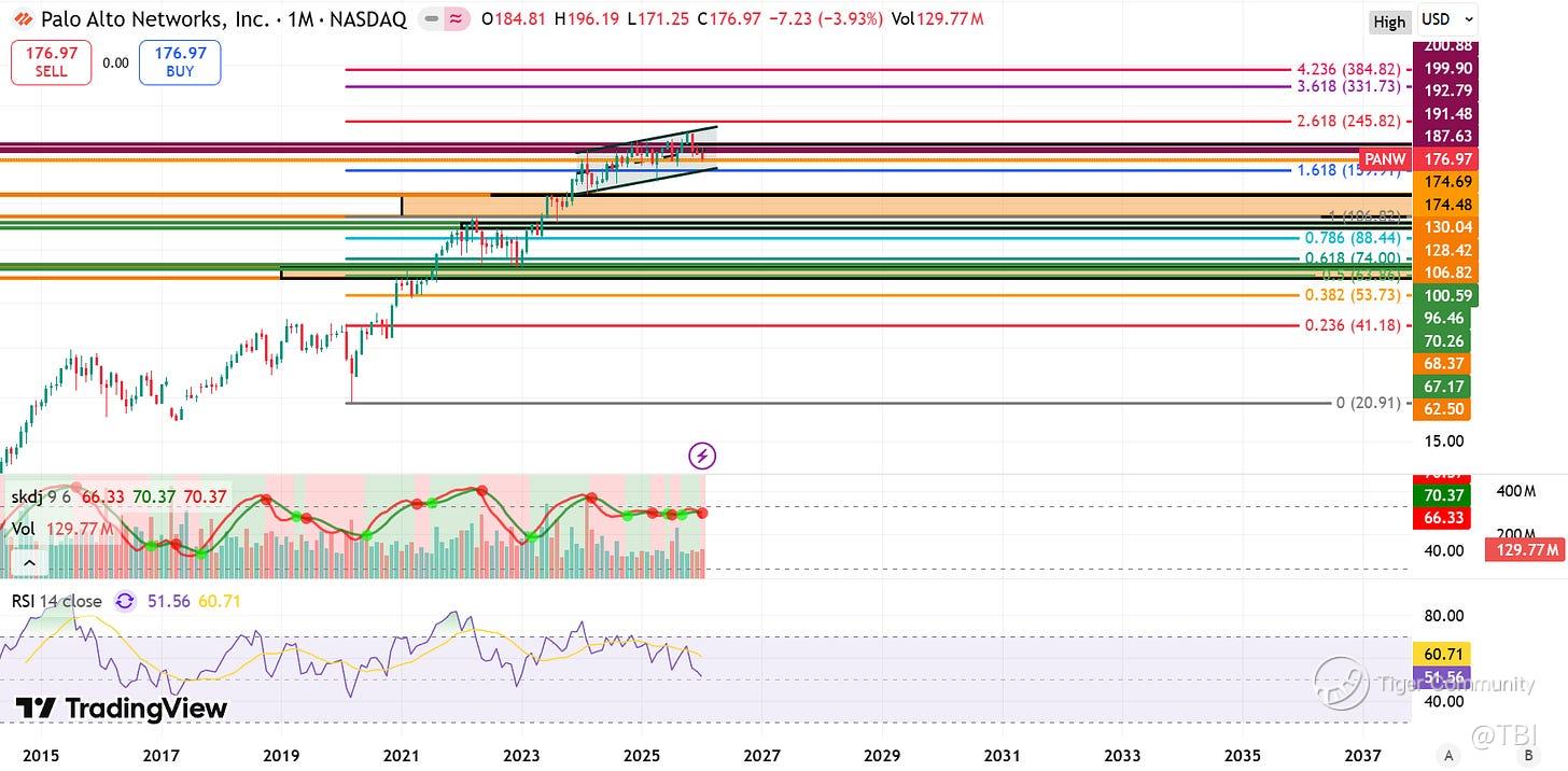 Should this weekly zone hold, PANW can countertrend back into the 187.63 monthly level. Otherwise, should PANW break down, it will likely trend into the 1.618 Fib level at 159.91.