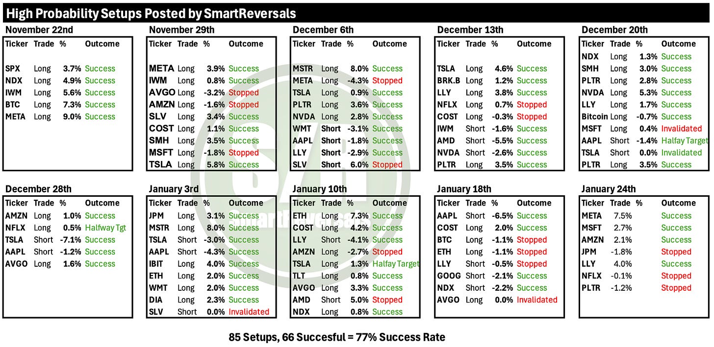 Last week, our High-Probability Setups continued to outperform, maintaining a cumulative accuracy record of 77%. We correctly identified moves in $Meta Platforms, Inc.(META)$ $Microsoft(MSFT)$ $Amazon.com(AMZN)$ $Eli Lilly(LLY)$ $iShares Russell 2000 ETF(IWM)$, securing an average gain of 4.1% across bullish and bearish setups.