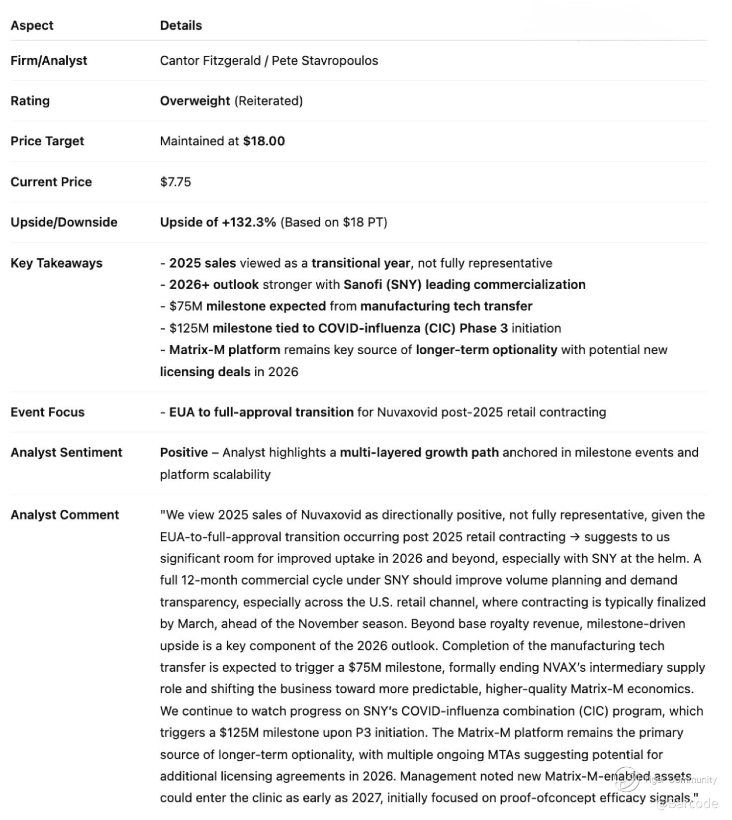 Under Sanofi, 2025 is increasingly viewed as a transitional year rather than a demand ceiling. The shift from EUA to full approval improves contracting visibility, with milestones still active, including a US$75M manufacturing tech transfer payment expected in 2026 and additional payments linked to COVID-influenza combination Phase 3 progression.