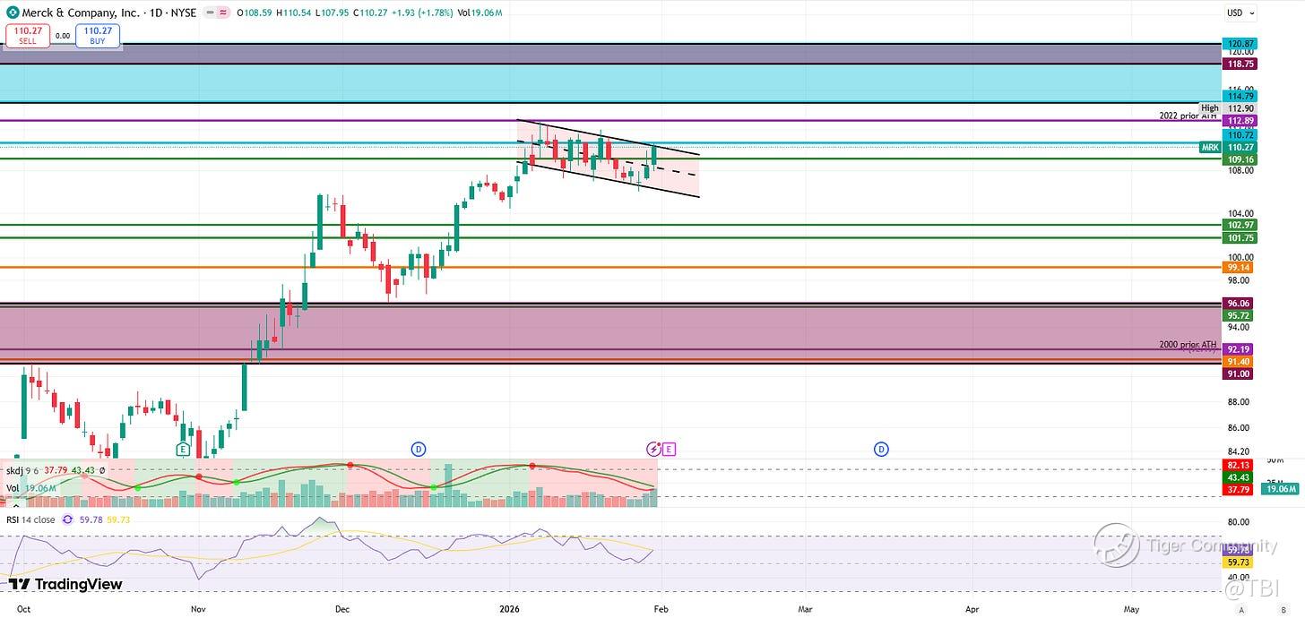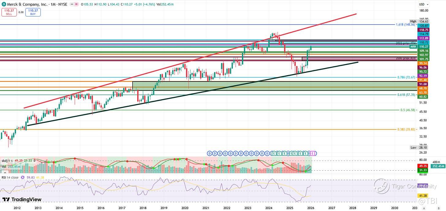However, if MRK breaks down below 109.16 and below this channel, then it can the 102-103 half-yearly support area once more.
