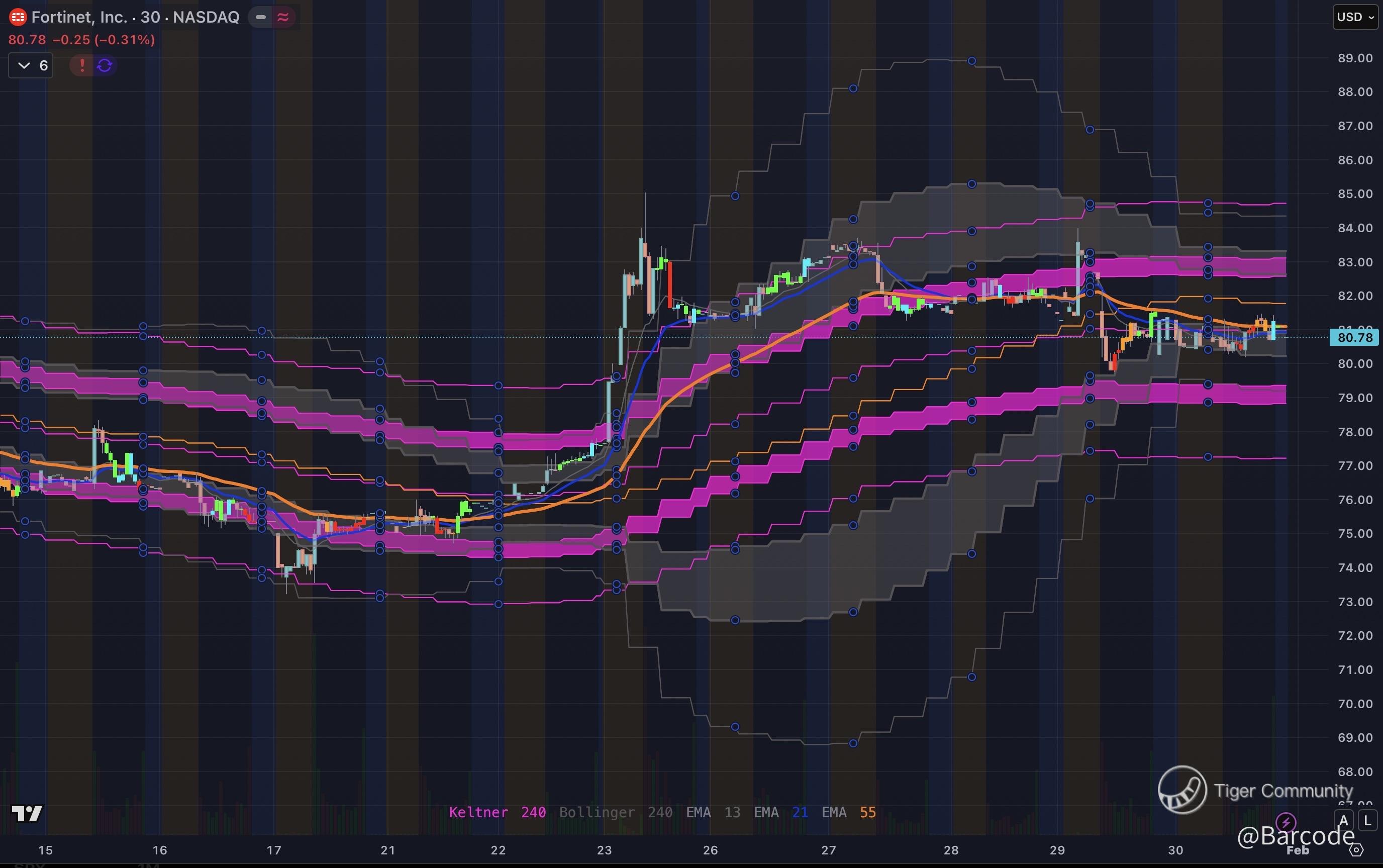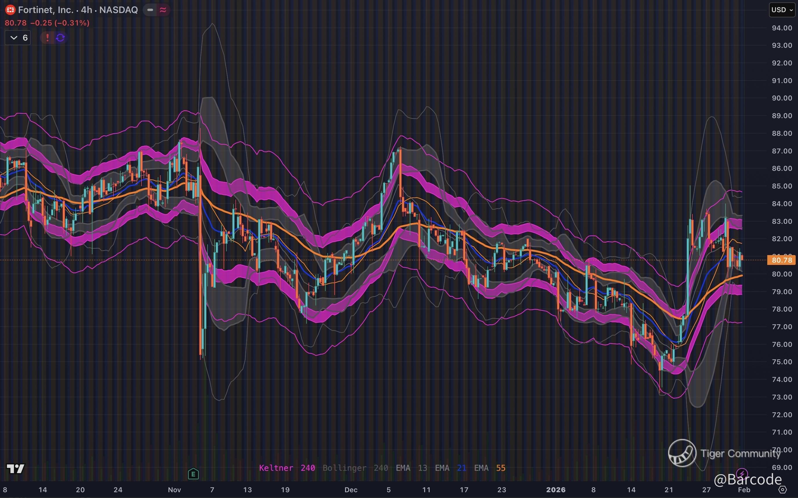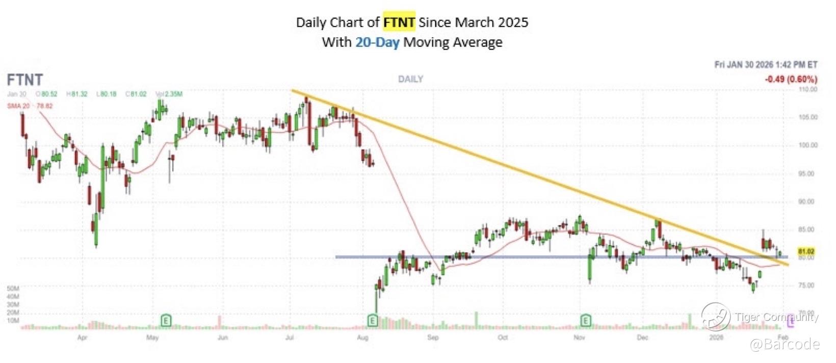 January delivered macro volatility, geopolitical noise, and earnings dispersion that kept software positioning defensive across the board. As February begins, flows are reassessing names where sentiment remains cautious but technical structure is quietly improving. Fortinet stands out as one of the more constructive setups within the group.