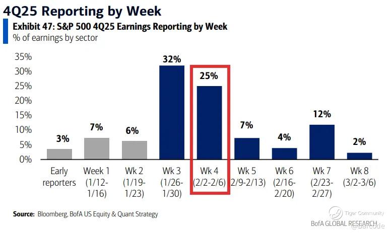 We’re past peak S&P reporting, but this week still carries massive influence, with roughly 25% of S&P earnings weight reporting, covering around 155 constituents.
