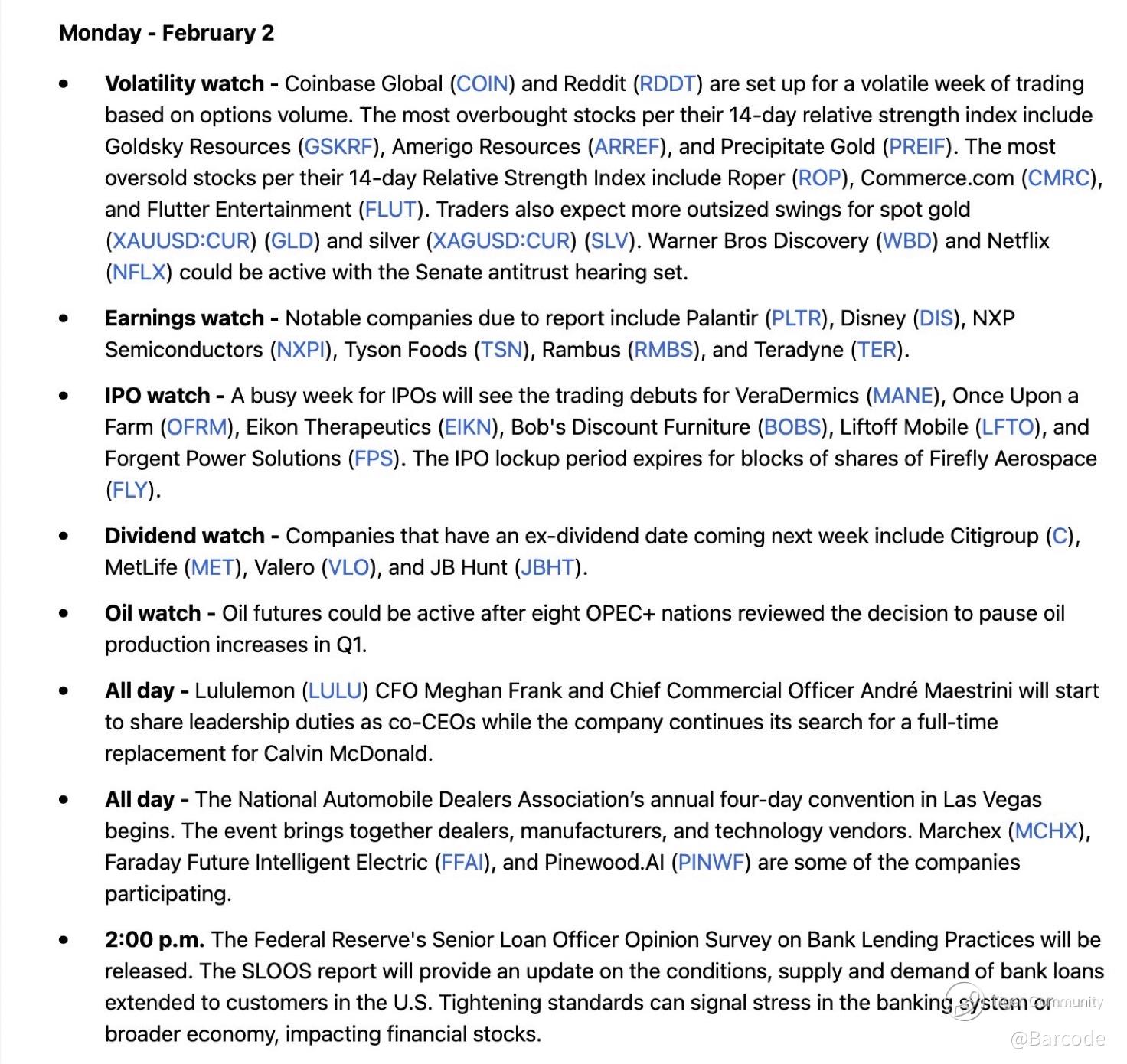 02Feb26 ET 🇺🇸 and we’re entering one of those weeks where everything converges at once. Earnings weight, labour data, shutdown politics, tariff talk, sector rotation and global policy signals are all colliding. When catalysts stack like this, price rarely moves gently. It reprices.