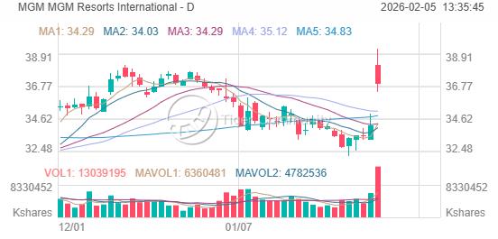 $MGM surges 8.08% to $36.93 short squeeze ignites eyes on $41