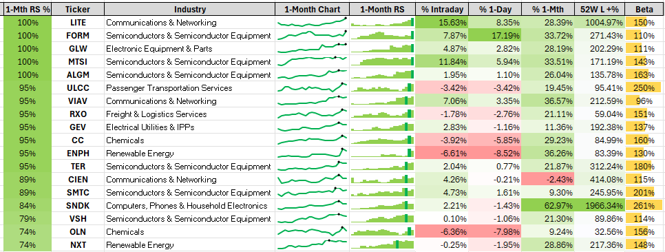 Post-Selloff RS Screen | LITE, FORM, GLW, MTSI, ALGM, ENPH, CIEN