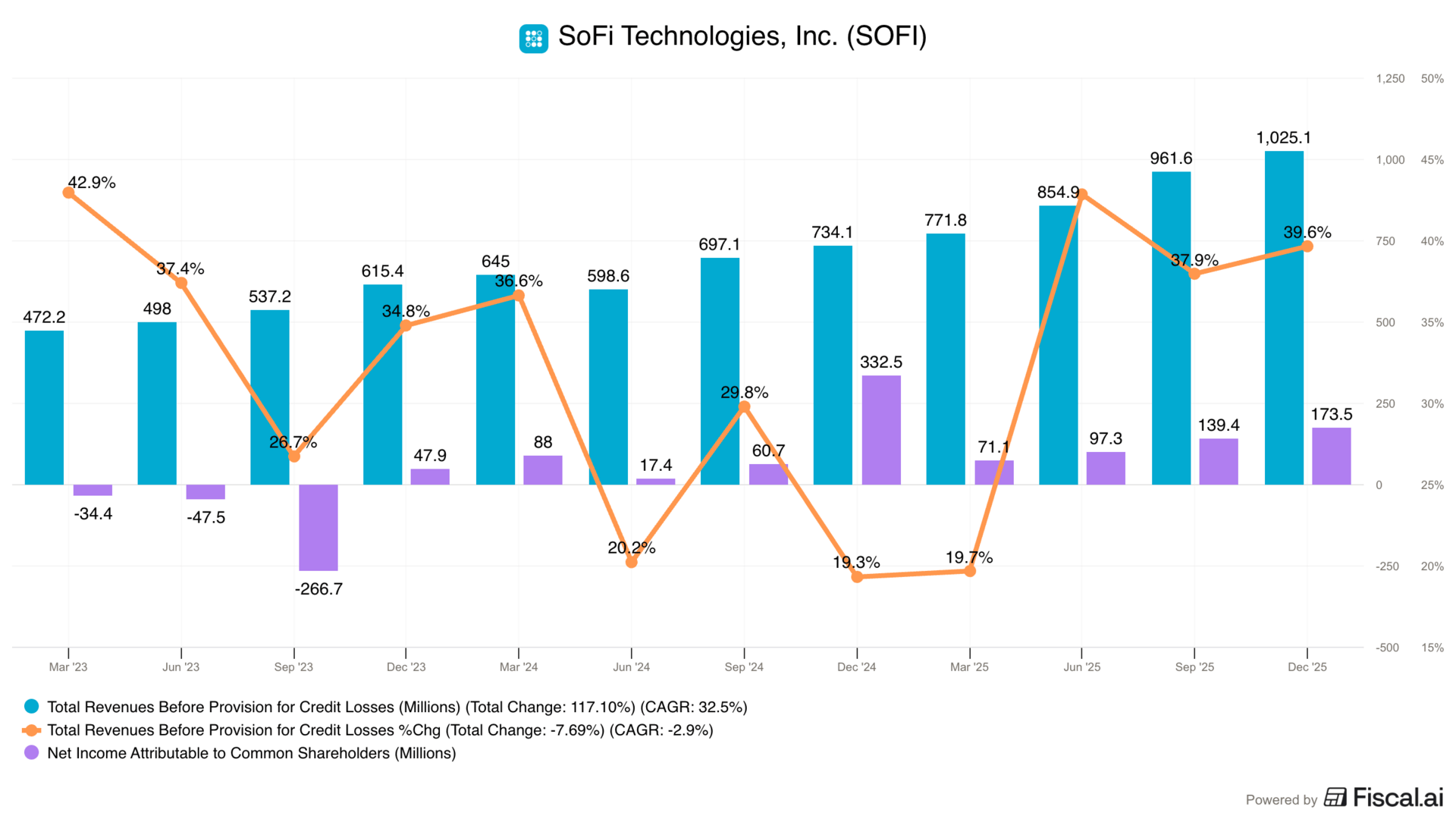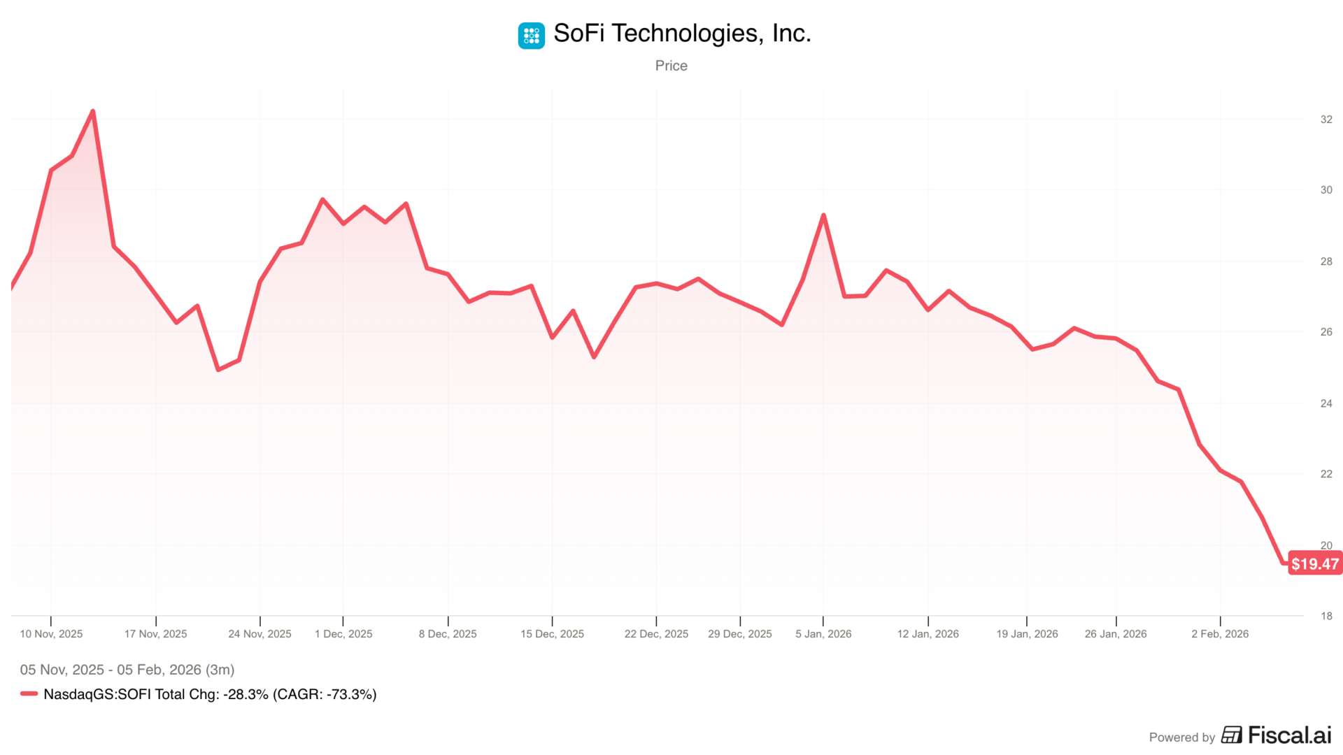 One of my biggest holdings is SoFi $SOFI ( ▲ 7.19% ), which is now down 40% from its high just a few months ago.