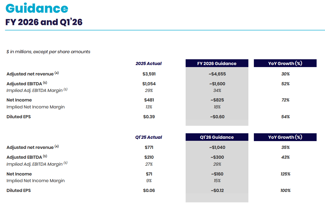 And management guided for 30% revenue growth in 2026 and a 72% increase in net income to an incredible 18% net margin.