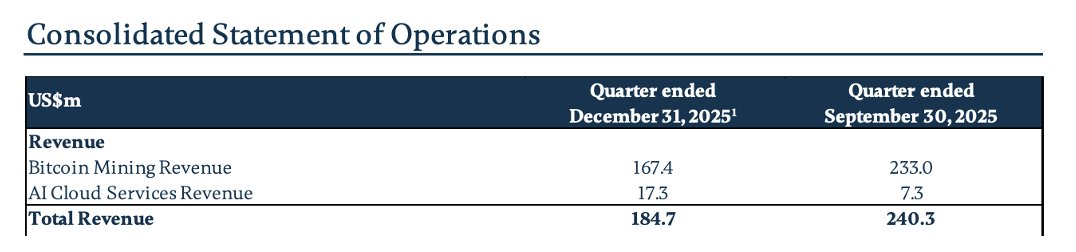 So the revenue miss was entirely driven by their legacy bitcoin business, which has nothing to do with their fast-growing, high-potential AI data center business.