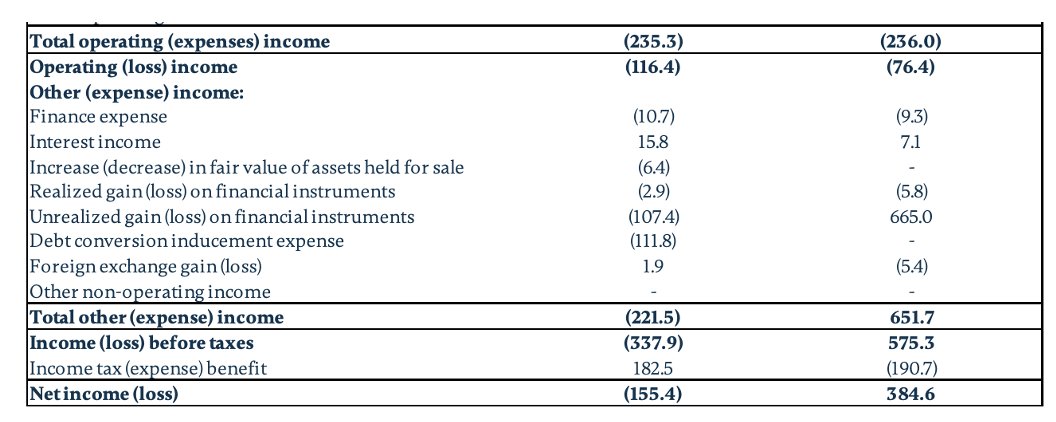 $107M unrealized loss on financial instruments