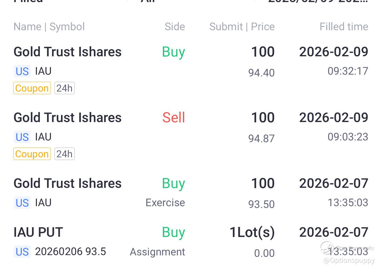 • If IAU falls below $93.50 → I get assigned shares at $93.50