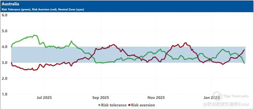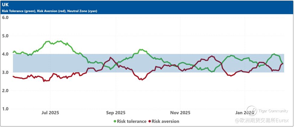The blue shaded zone between levels 3 and 4 for both indicators signifies a reasonable balance between the supply and demand for risk in the market. When both lines remain within this blue zone, the market is considered ‘emotionally’ stable. However, when both lines move outside this zone, the significant imbalance in demand and supply for risk can lead to overreactions to unexpected news or risk events.