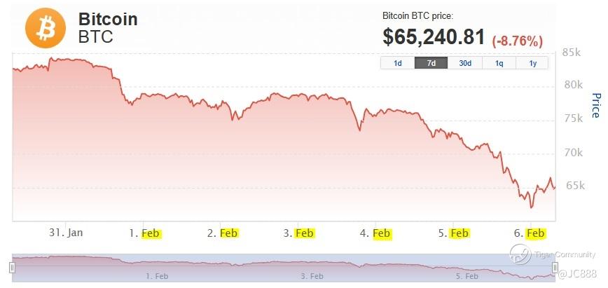 It has dropped from highs near $82,959 (30 Jan 2026) to around $65,049 (by 06 Feb 2026).