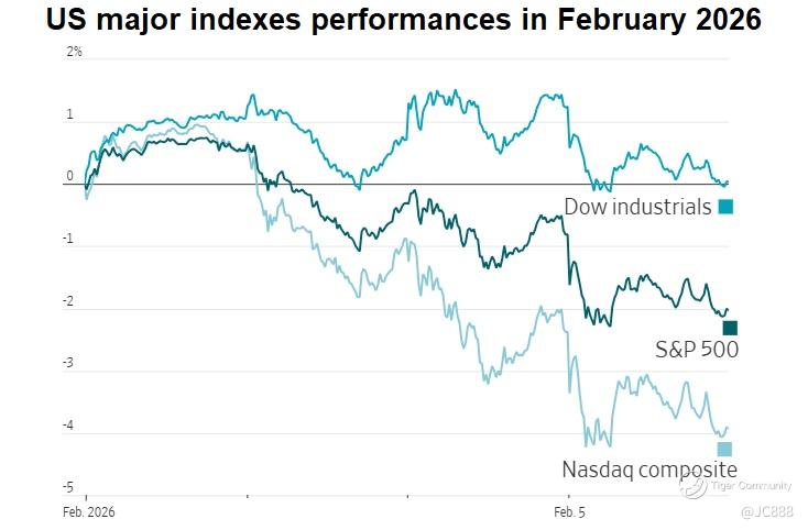 Spared the worst of the "AI bloodbath" because it is less concentrated in high-growth software stocks, unlike Nasdaq.