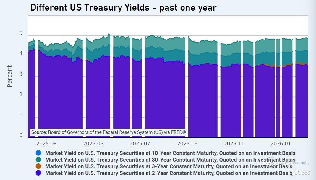 During Feb 3 - 5, stock selloff, US Treasuries rallied as a safe haven, with yields declining amid equity volatility.(see above)