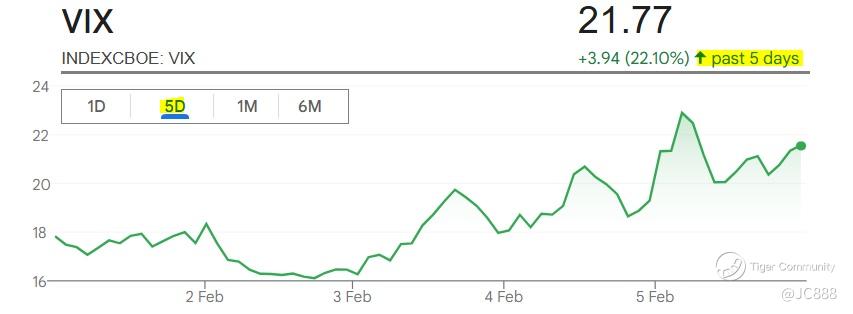 The VIX, Wall Street's fear gauge, rose to +18.64 on 4 Feb 2026, up 3.56% from the day before.