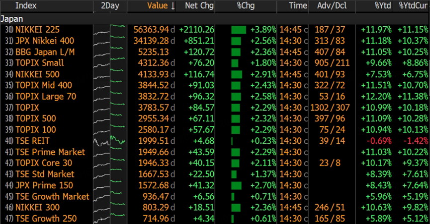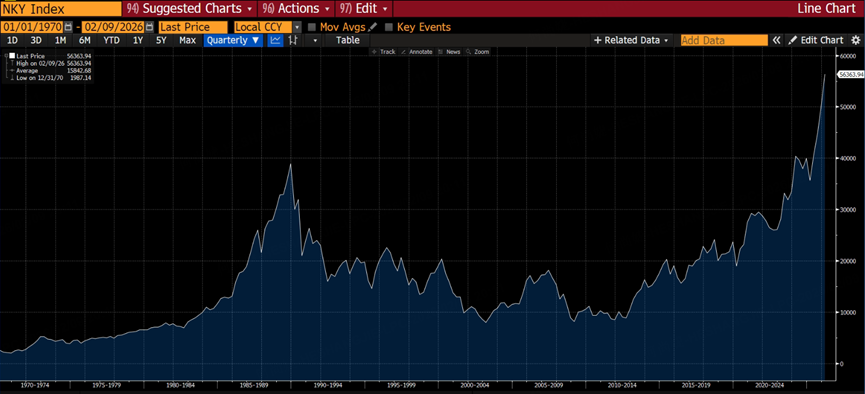 After Sanae Takaichi, leader of Japan’s Liberal Democratic Party, secured a landslide election victory, the Nikkei 225 index jumped about 3.9% in a single session to a record high, while the TOPIX rose 2.3% on the same day.