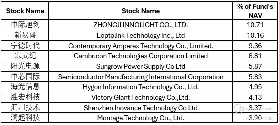 $CSOP Star&Chinext50 S$(SCY.SI)$ ’s underlying fund’s top 10 holdings (as of 2025/12/31)