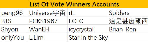 Yesterday's winners: