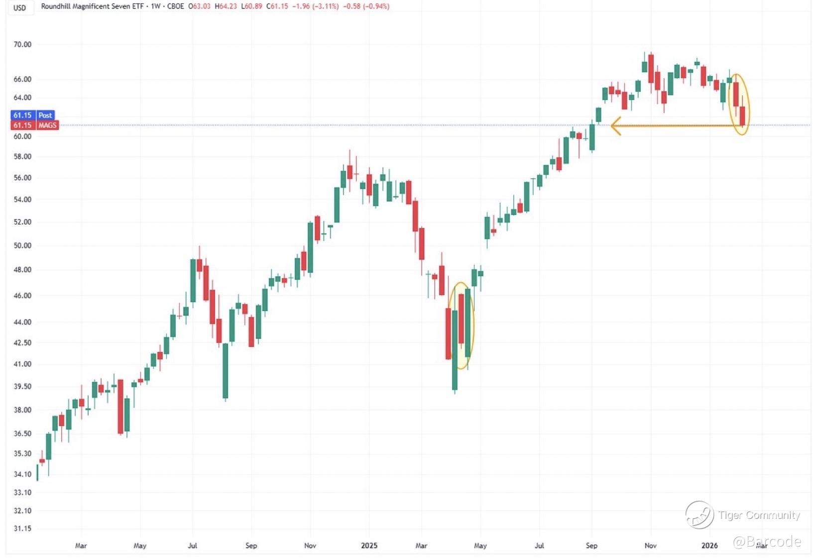$MAGS Mag-7 ETF was -3.1% for the week, after -4.6% the prior week (the worst since April 2025), taking it to the lowest weekly close since the start of September 2025.