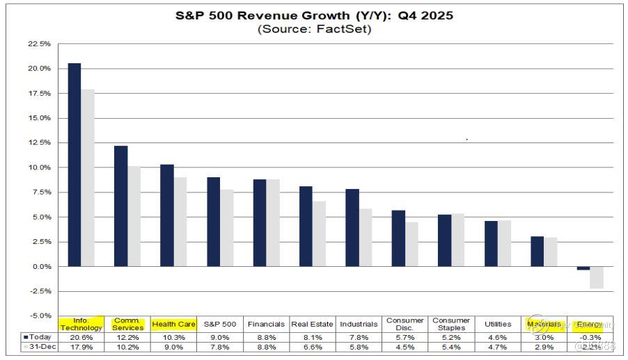 Driven by $Meta Platforms, Inc.(META)$ and Google, this sector is seeing double-digit growth (12.2%).