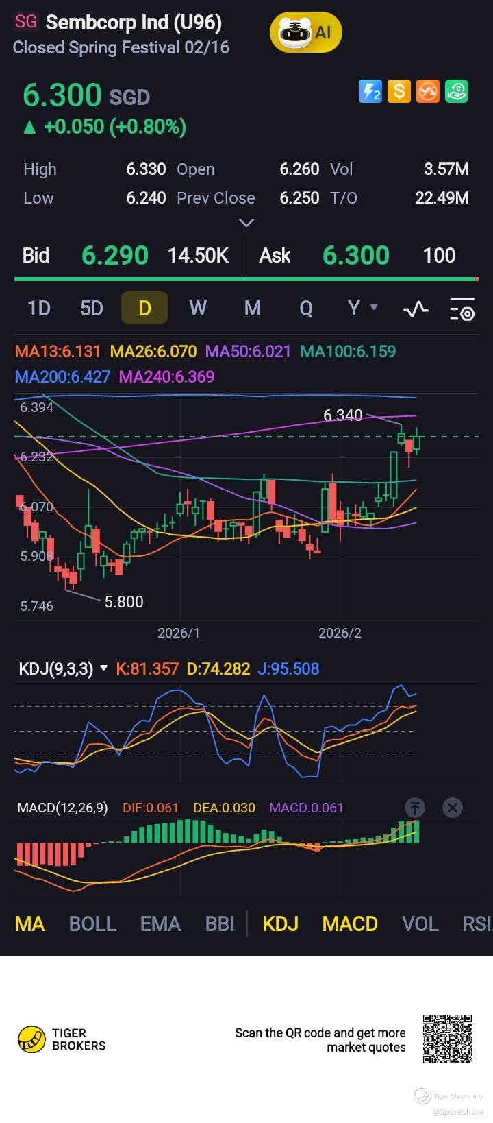 Sembcorp Ind - She is slowing rising up after touching the low of 5.80. Now trading at 6.04 looks rather interesting!
