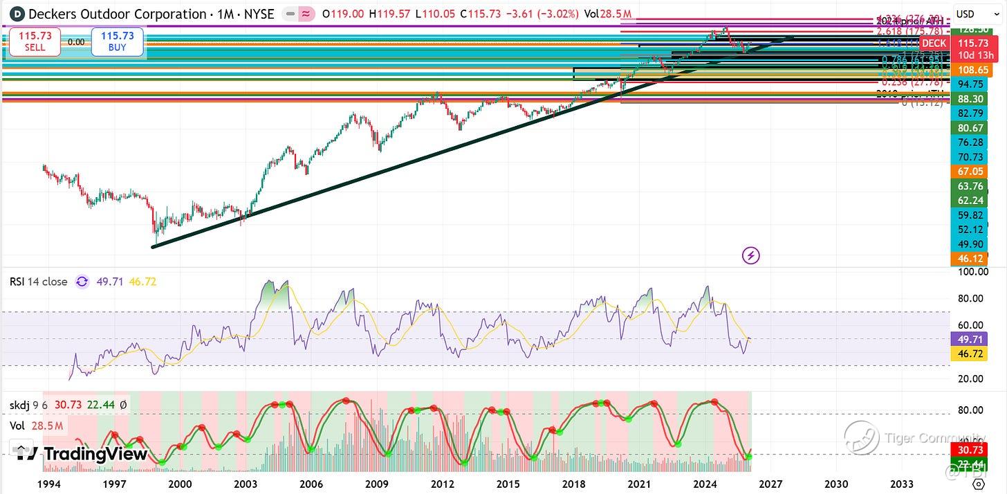 If 113.65 holds, DECK can see upside continuation into the 127-133 half-yearly imbalance.