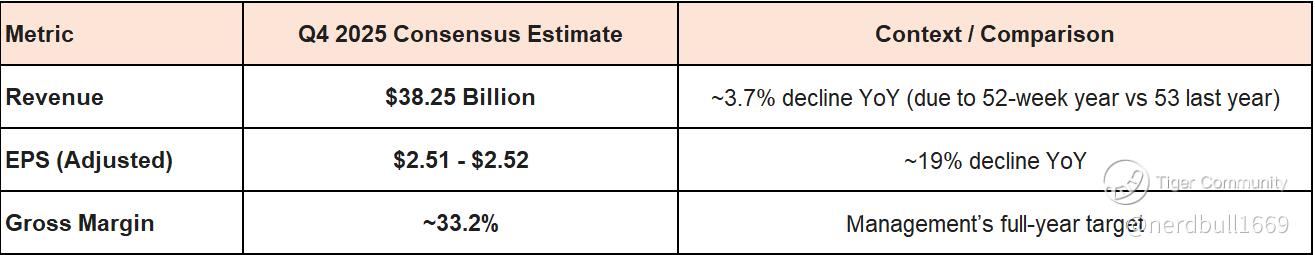 Revenue: Estimated at $38.25 billion (down ~3.7% YoY).