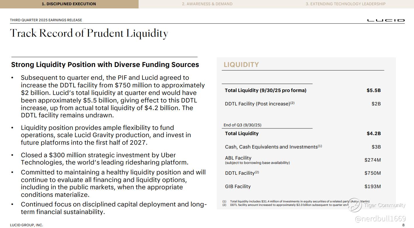 Liquidity Position: Ended the quarter with $4.2 billion in cash and investments. Post-quarter, the Saudi PIF increased its credit facility from $750M to $2 billion, effectively extending Lucid’s runway into the first half of 2027.