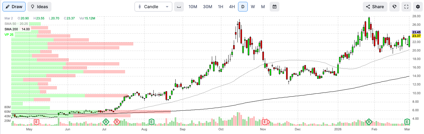 Perfect theme(s), catalysts, macro tailwinds, strong price action...I love UUUU in the low $20s.