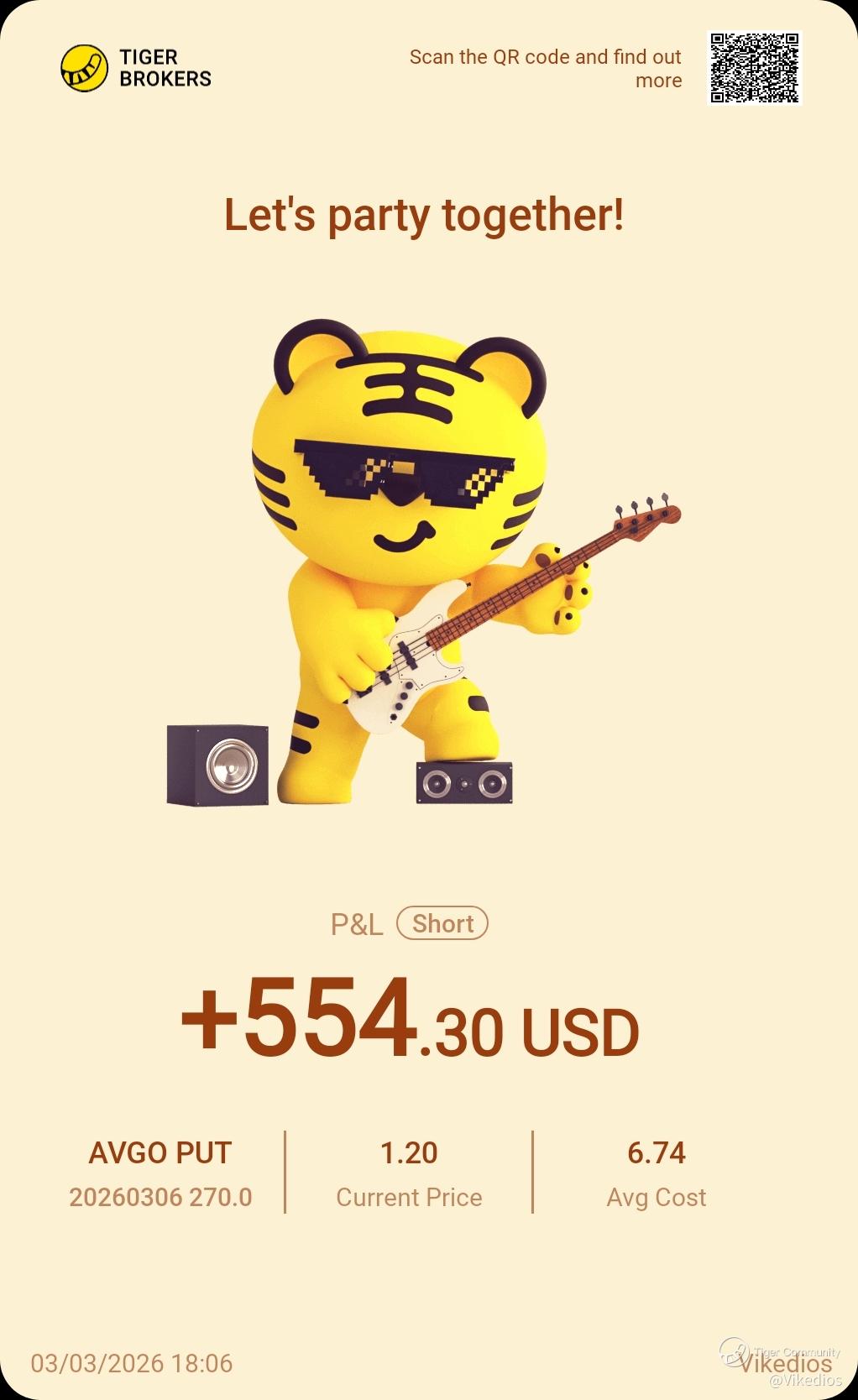 $AVGO 20260306 270.0 PUT$ Forgotten to close it last night. Ops!!!