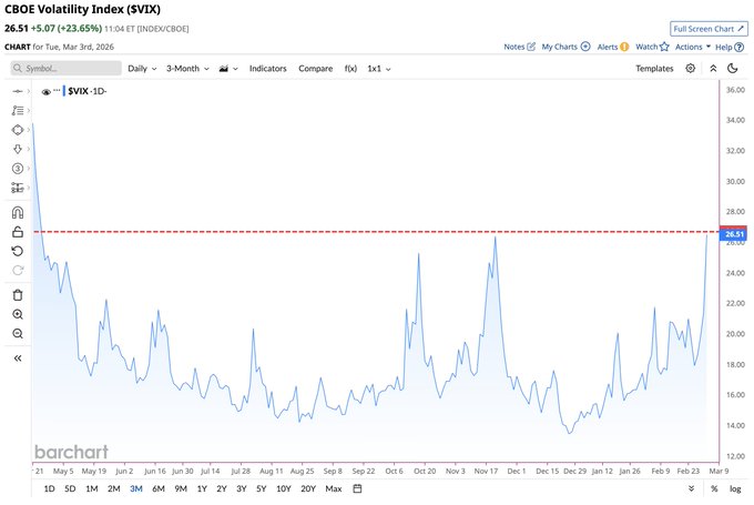CBOE Volatility Index $VIX on track for its highest close since April's Tariff Meltdown 🚨🚨🚨