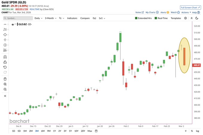 Gold $GLD on track for its 3rd largest loss over the last decade 📉😱👀