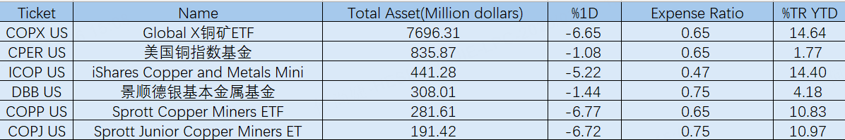 As a result, copper mining ETFs declined sharply overnight. $Global X Copper Miners ETF(COPX)$ fell 6.65% in a single day, $Sprott Copper Miners ETF(COPP)$ dropped 6.77%, and $SPROTT JUNIOR COPPER MINERS ETF(COPJ)$ declined 6.72%, all close to a 7% loss. This reflects how copper mining stocks tend to react more strongly to movements in copper prices. In contrast, $United States Copper Index Fund(CPER)$ , which tracks copper futures prices more directly, declined by a smaller 1.08%, highlighting that mining equity ETFs are typically much more volatile than the underlying commodity.